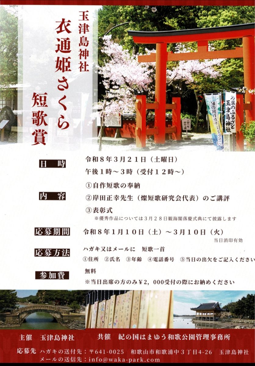 🌸玉津島神社 衣通姫さくら短歌祭のお知らせ🌸